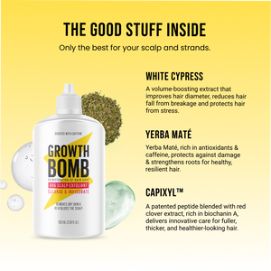 *based on a 5 week consumer study with 35 participants using the Growth Bomb Supercharge Shampoo